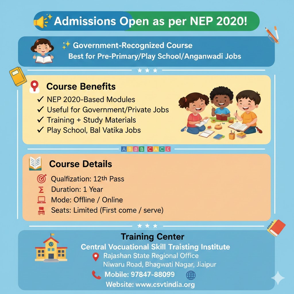 ๐ ECCE Educator Vacancy 62, 000+ Job opportunities across Rajasthan